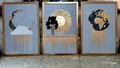 رنگ بندی این تابلو سه لت مشکی،طوسی پرنگ و کمرنگ،طلایی با زمینه طوسی خیلی روشن میباشد.